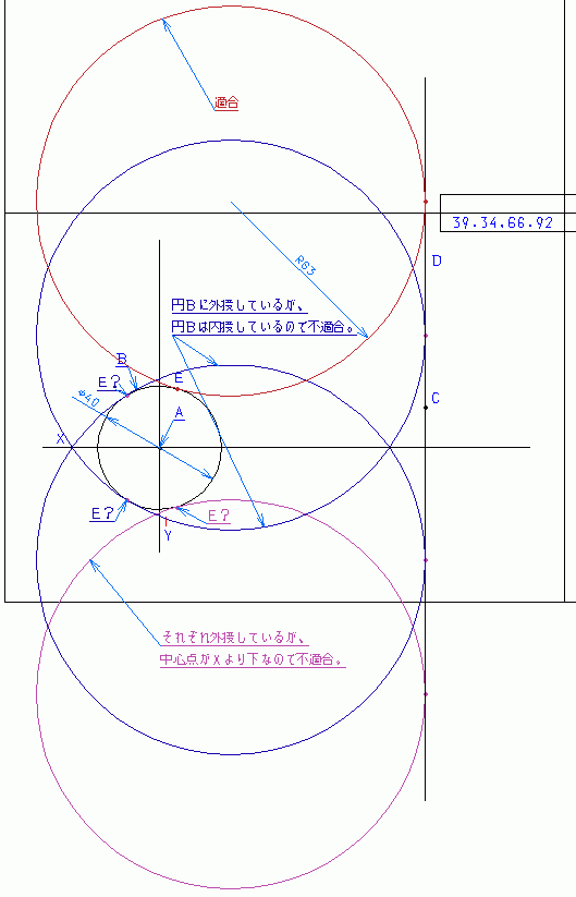 「線分CD及び円Bにそれぞれ外接する半径63mmの円」の解説内容1.「それぞれ外接」とあるので、お互いが外接していなければならない。 2.条件を満たす解答は複数考えられる場合が多い。文章問題以外は、簡略図があるので、無意識のうちに簡略図に近いほうを選択しているにすぎない。全ての解を理解した上で、最適な解を選択できるようになるとカンペキ! ![]() 戻る CAD利用技術者試験トップへ |