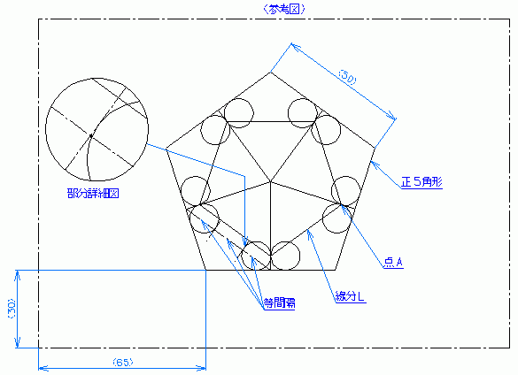 問10 線分Lの長さを小数点以下2桁まで求め、マークシートに記入しなさい。 問11 点AのX座標値を小数点以下2桁まで求め、マークシートに記入しなさい。 問12 点AのY座標値を小数点以下2桁まで求め、マークシートに記入しなさい。 解答用紙 cad_technical_expert_1099_q_01.dxf (6 kb) 問題 解答 解説 作図 CAD利用技術者試験トップへ |