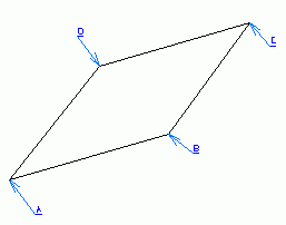 ![]() 1.右の図に示す頂点を持つ四角形である。 2.頂点Aは作図区画左下を原点とし(19,14)の位置にあるものとする。 3.各辺の長さはそれぞれ、線分AB=90mm,線分BC=75mm,線分CD=85mm,線分DA=79mmとすること。 4.線分ABと線分CDは平行である。 5.線分ABは頂点Aの水平軸から16度の角度を持った線分である。