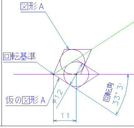 平成13年度(前期) 問 4 解説1.解答の向きに直接描くことが出来ない場合は、任意の向きで仮に描いておき、正式な向きに回転移動する。 角度を指定する場合、誤差が大きくならないように、2線分を指定する事。(コンピュータが角度を算出。) キーイン入力は、入力桁数が少ない場合や、入力出来るがコンピュータが小さい桁を無視する場合があるので、誤差が大きくなる。 又、入力ミスの可能性もあるので、極力避ける。 ただし、切の良い数値の場合は、キーイン入力の方が誤差が小さくなる。