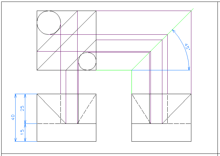 ポイント ・正面図と、右側面図は、鏡面対称形状となる。 注意点 ・中心線は、描いてはいけない。 ・かくれ線は、全て描く。 問題 解答 解説 作図 CAD利用技術者試験トップへ |