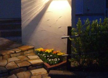 玄関の花壇に花を植えました。 完成イメージは、家の色に合った同系色で、華やかな感じを目指すことにしました。 洋風な家なので、なるべく洋風の花を選定しました。 何も分からないので、花屋さんに行って、いろいろ教えてもらいながら決めることにしました。 まず、花壇の大きさを紐で図って、花屋で再現できるようにします。 花壇をデジカメで撮って、花屋で見れるようにします。 花屋に行って、デジカメ画像を見てもらうのと紐で花壇を再現して、相談に乗ってもらいました。 紐で再現した花壇に、実際に花を配置して、いろいろ検討して決めました。 植え方や、培養土,化成肥料の選定や、手入れの仕方を聞いて、購入しました。 植え方
